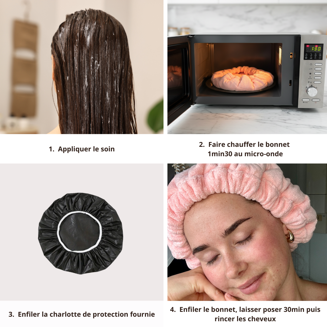 "Le bonnet chauffant est l'allié des cheveux en manque de soin. Il permet de maximiser les masques capillaires."